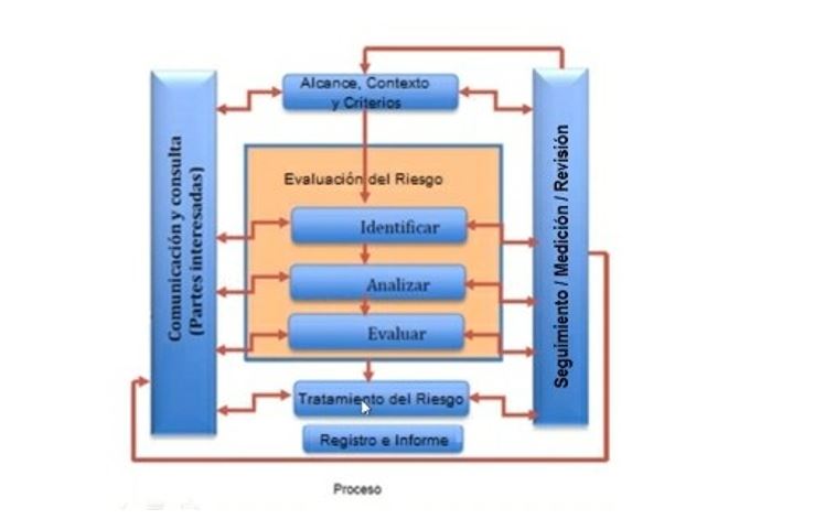 El enfoque de procesos implica la definición y gestión sistemática de los procesos y sus interacciones, con el fin de alcanzar los resultados previstos de acuerdo con la política del sistema de gestión y la dirección estratégica de la organización. La norma ISO 31000:2018 confirma la relación antes mencionada mediante el siguiente gráfico: